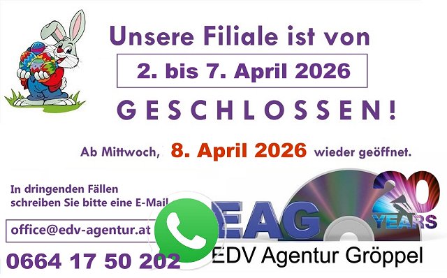 © 2003-2026 by EDV Agentur Gröppel, Packerstraße 135, 8501 Lieboch |